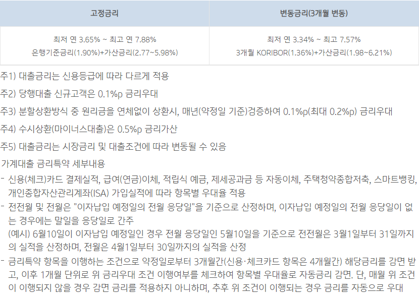 대출 금리는 우대조건 및 신용도에 따라 달라질 수 있습니다.