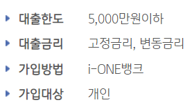 중도상환수수료는 전액 면제이며, 대출 절차는 스마트폰(I-ONE뱅크앱)을 통해 간단하게 신청하시면 금리 및 한도가 책정됩니다.
