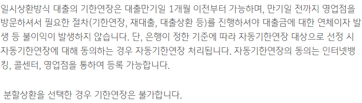 만기일시상환(통장자동대출 포함)일 경우 최저 1년 이상 최장 5년 이내까지 가능합니다.
