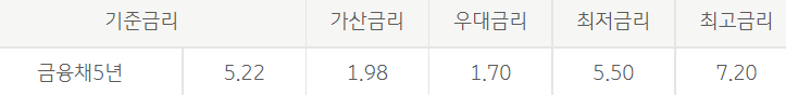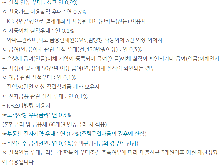 대출 최종 적용 금리는 기준금리 + 가산금리 - 우대금리를 적용하며 우대금리 조건은 최고 연 1.7%까지만 가능합니다.
