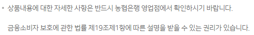 대출신청과 관련하여 더 자세한 사항을 알고 싶으시다면 위 상품설명서 및 아래 농협은행 고객행복센터 전화번호인 1661-3000/1522-3000으로 상담가능시간인 평일 09시부터 18시까지 상담 받을 수 있습니다.
