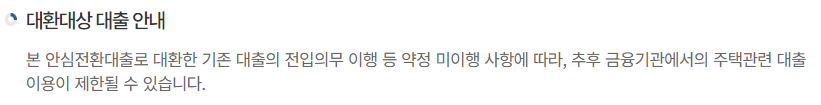- 이번 안심전환대출로 대환하려는 대출은 아래요건을 충족해야 합니다.