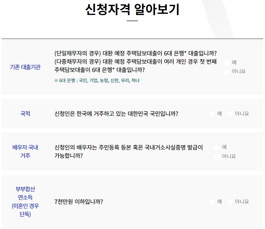 안심전환대출 자격 조건