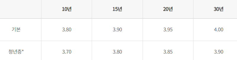 안심전환대출의 금리는 아래와 같습니다.