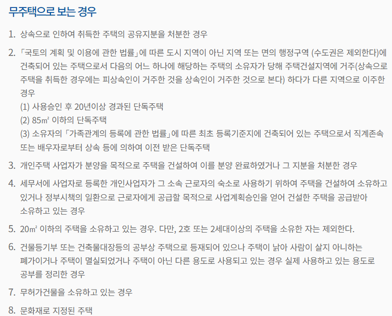 단 아래의 무주택으로 보는 사유에 해당하는 경우 해당 주택은 보유 수에서 제외 검토 가능합니다.