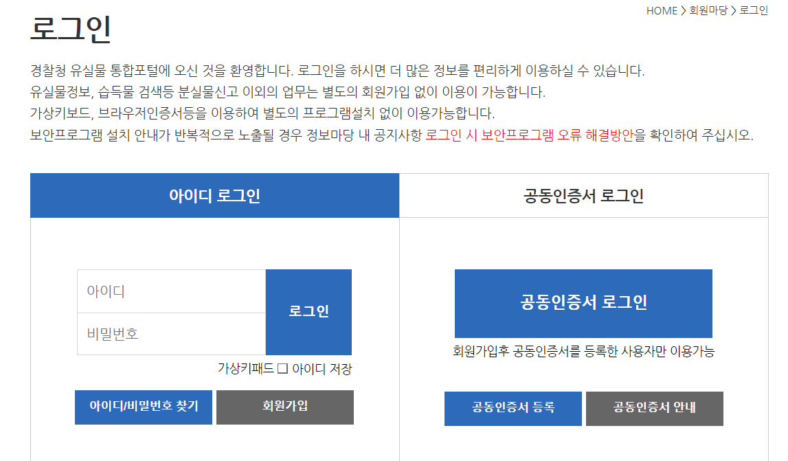 경찰청 유실물 종합관리시스템