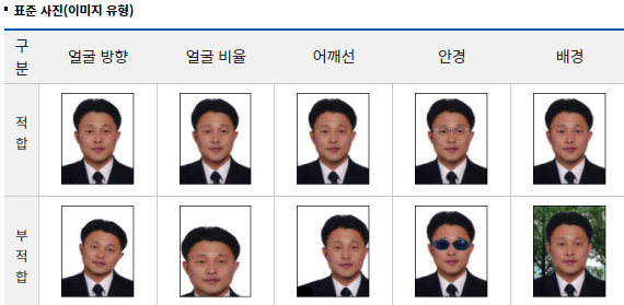 사진을 준비하실 때는 규격이 있으며 다음과 같습니다.