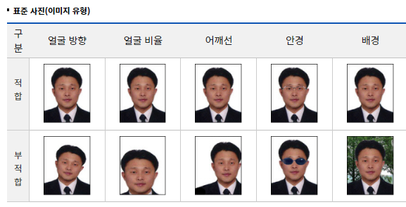 꼭 위와 표준규격을 참고 하셔서 표준규격에 맞는 사진을 제출하시길 바랍니다.
