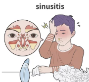 | 감기 | 상기도 바이러스 감염 후 부비동 배출구 막힘 |