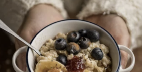 ▶ 아침 식사로 따뜻한 오트밀을 섭취하면 위에 부담이 덜 갑니다.