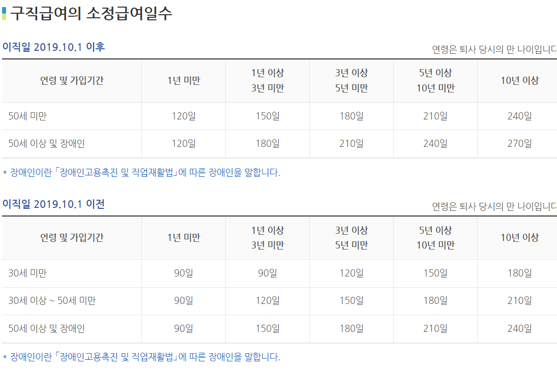 연령 및 고용보험 가입기간에 따라 실업급여가 달라집니다.