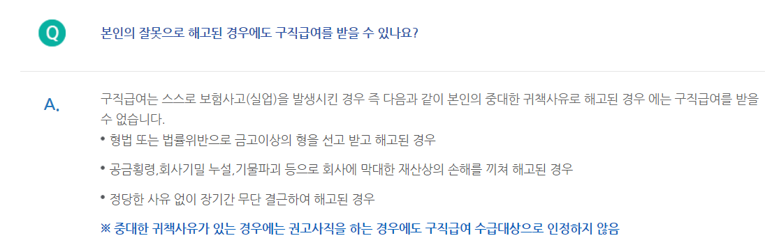 근로자가 실직하였을 때 ,실업급여를 받을 수 있는 조건