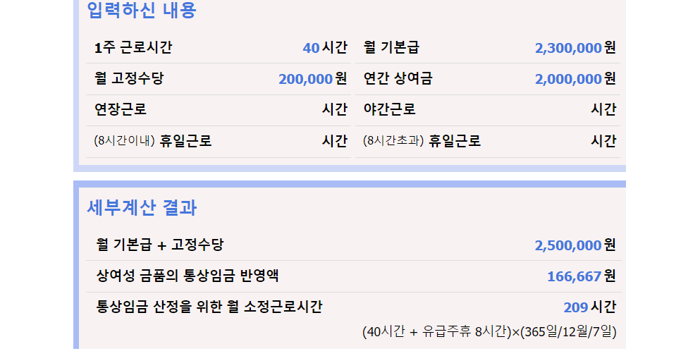 보통 일반적으로 근무하는 주 5일 일 8시간 근로자의 경우 통상임금 산정기준 시간 수는 209시간입니다.