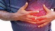 위산이 식도로 역류하면서 가슴 중앙~왼쪽 위쪽에 타는 듯한 뻐근함 유발