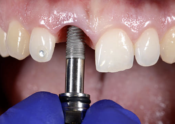 3. 임플란트 삽입: 수술 부위에 절개를 하여 치아뼈를 드러내고, 드릴을 사용하여 치아뼈에 구멍을 뚫습니다. 그리고 임플란트라고 하는 금속 나사모양의 기구를 구멍에 박아 넣습니다. 이때 임플란트는 치아뼈와 결합하여 인공 치근 역할을 합니다.